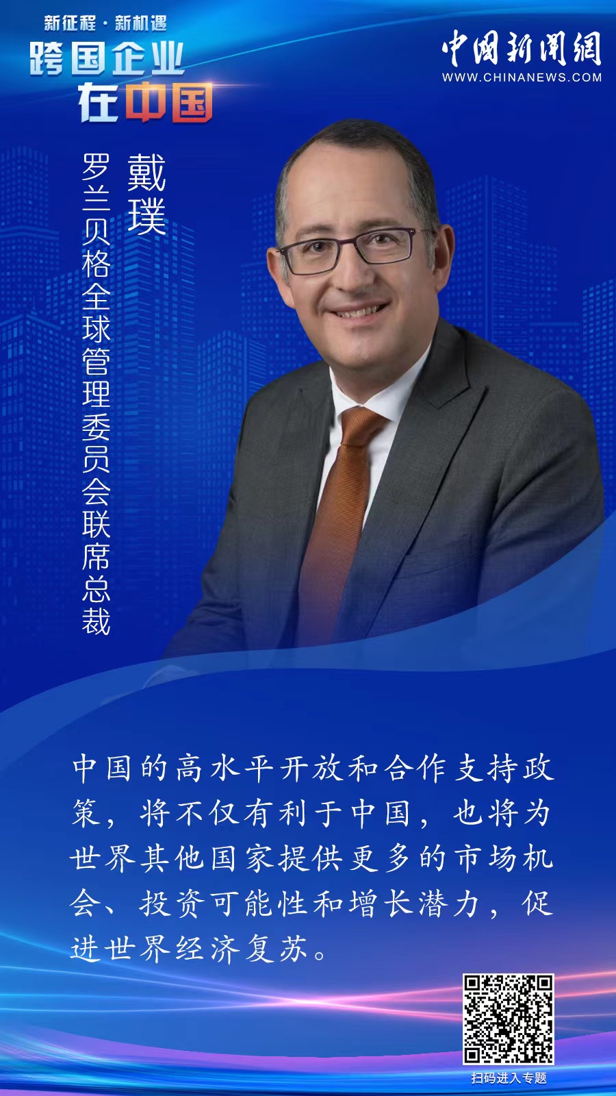 “我们将2023年视为一个新时代,新时代中国推进高水平对外开放、推动高质量发展将为跨国企业带来许多机会,对企业的发展意义重大。”